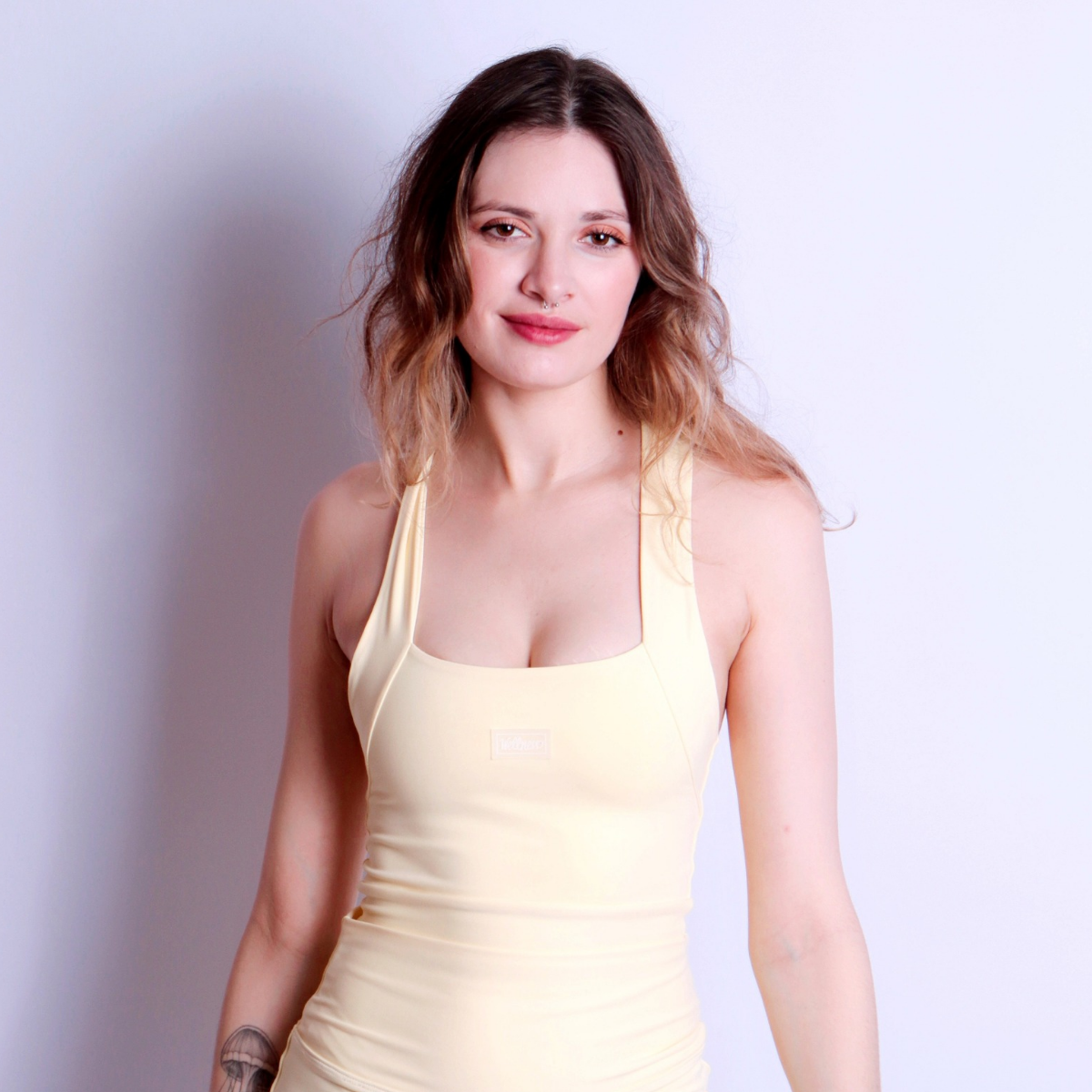 O Top Débora nasceu para mulheres que se movimentam com intensidade, coragem e autenticidade. É a peça ideal para quem faz uma prancha, um burpee, um stiff ou até um sparring sem medo de nada sair do lugar.